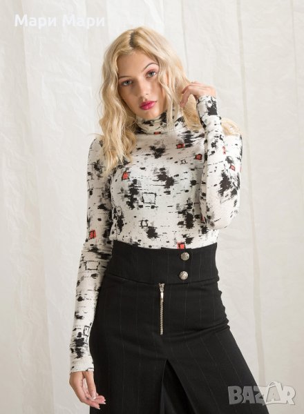 От фино, нежно плетиво е полото. Абстрактният десен, смесващ геометрия с мастилени пръски, веднага грабва вниманието. Мекото екрю е допълнено от черно и ярко, тиквено оранжево. Съчетайте с различни поли, панталони или гащеризон и затвърдете имиджа си на модерно момиче сред приятелите си! -42лв