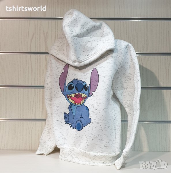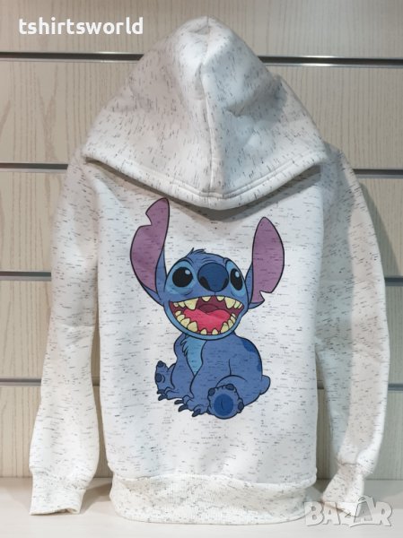 Нов детски суичър с дигитален печат Стич (Stitch) в цвят бял меланж
