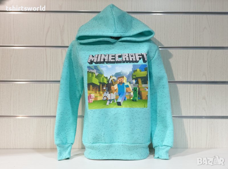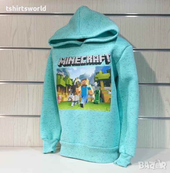 Страхотен нов детски суичър в цвят светлозелен меланж с качулка и дигитален печат MINECRAFT. Произведен в България под марката PRINTEX от 100% висококачествен памук, което го прави изключително топъл и желан от нашите дългогодишни клиенти. Моделът е подходящ за пролетния и есенно-зимният сезон, има ластични маншети на китките и ханша, запазващи топлината. Меката подплата и свободната кройка го прави изключително удобен за нашите малки клиенти.