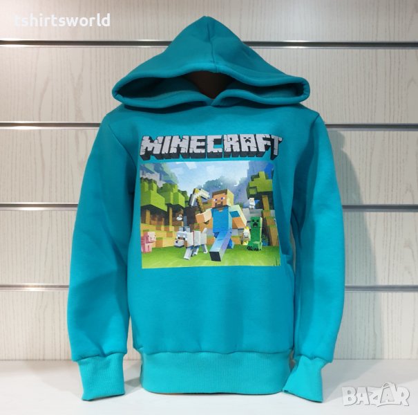 Страхотен нов детски суичър в зелен изчистен цвят с качулка и дигитален печат MINECRAFT. Произведен в България под марката PRINTEX от 100% висококачествен памук, което го прави изключително топъл и желан от нашите дългогодишни клиенти. Моделът е подходящ за пролетния и есенно-зимният сезон, има ластични маншети на китките и ханша, запазващи топлината. Меката подплата и свободната кройка го прави изключително удобен за нашите малки клиенти.