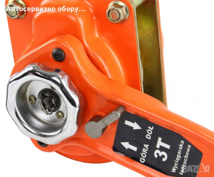 ЛЕБЕДКА С ТРЕСЧОТКА 3000KG KIFOR RUKCUG Лебедката с ръчна тресчотка е професионален инструмент за използване в много индустрии. Това е издръжливо, здраво и солидно устройство, предназначено за професионалисти. Ще работи в пристанища, автосервизи, фабрики, строителни обекти и навсякъде, където има нужда от ефективно презареждане. Може да повдига предмети с тегло до 3000 кг на височина 2 метра. Тресчотният механизъм е много удобен за използване. Активира се с дръжка-лост. За да се повиши ефективността и комфорта на използване, лостът е завършен с ергономична, гумена дръжка, която също така осигурява сигурен захват. Просто преместете лоста леко наляво или надясно или го завъртете на 360° по часовниковата стрелка. Лебедката не изисква допълнителна мощност. Посоката на издърпване се променя с превключвател. Лебедката ви позволява да повдигате, спускате или спирате навсякъде (неактивна позиция). Използваната блокада незабавно блокира лебедката, когато веригата спре, като по този начин предотвратява неконтролираното поведение на окачения товар. Устройството е с 2 кукички. На едната се поставя товар, а другата кука служи за окачване на лебедката на носеща конструкция - кран, кран, траверса и др. Куките са изработени от висококачествена стомана и имат самозаключваща се защита срещу приплъзване на повдигнатия/спуснат елемент. състояние на артикула - ново материал на куката - стомана дебелина на брънката - 8 мм брой товарни вериги - 1 бр допустима товароносимост - 3000 кг максимална височина - 200см тегло - 18,5 кг