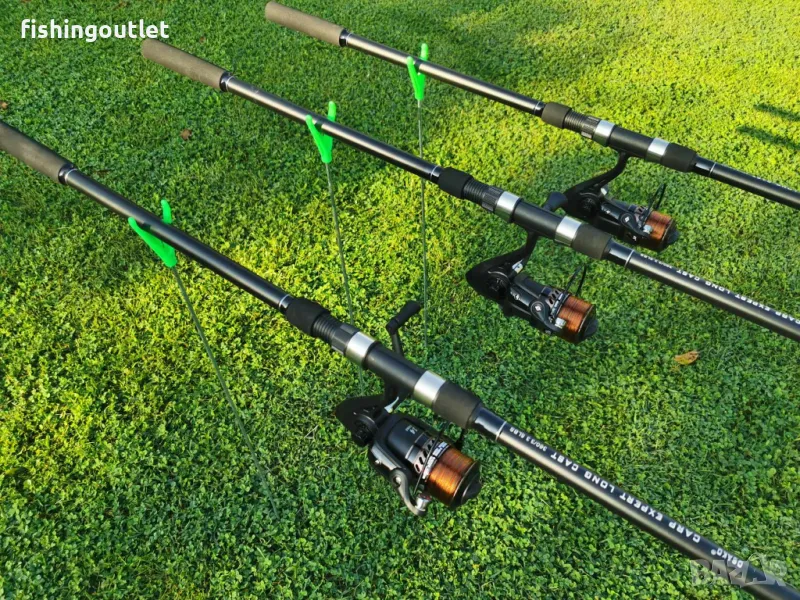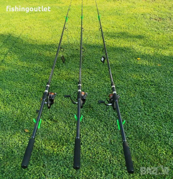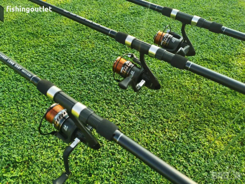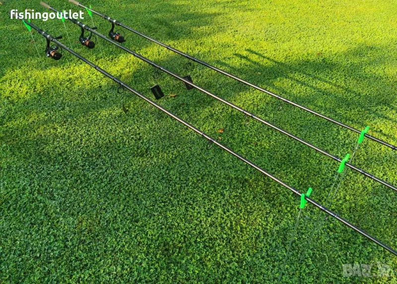 Промоция! Комплект 3 шарански въдици 3.60m и 3 макари 14 лагера с влакна
