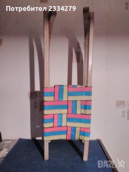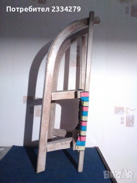 шейна,от 70-те години West Germany. Размери: 67х25см.,височина 20см., изработена от парен бук, желязна шина,въжена седалка, цена 18€.; N:2.Другата се ползва от големи и малки(събира двама). Размери: дължина.