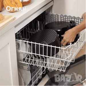 Горният вентилатор позволява на горещия въздух да циркулира в тигана по време на процеса на готвене и също така позволява широка гама от ястия да се приготвят равномерно, без да е необходимо да се добавя масло.