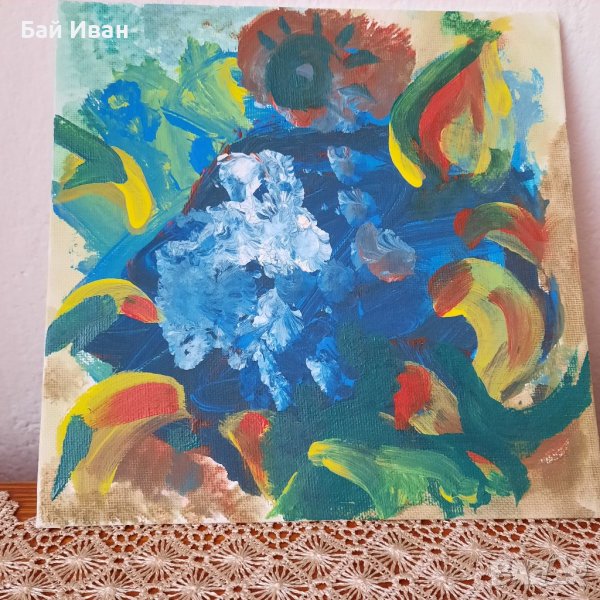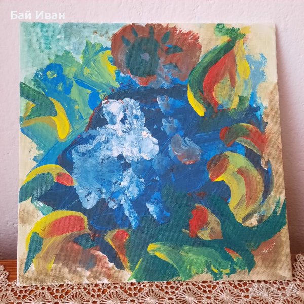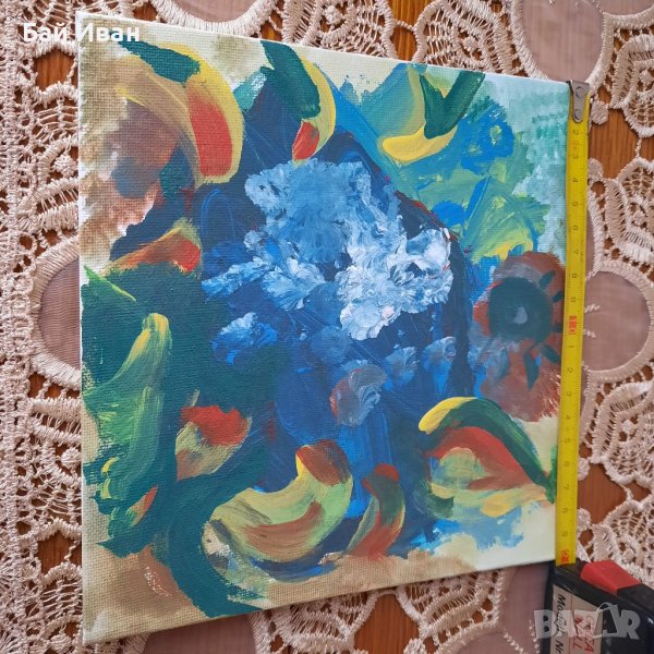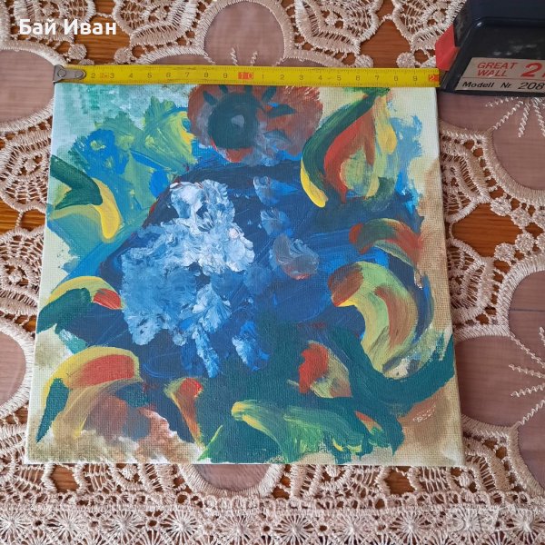 Получавате точно сниманата картина с размери 20см на 20 см квадрат. Арт картина с подпис на автора.