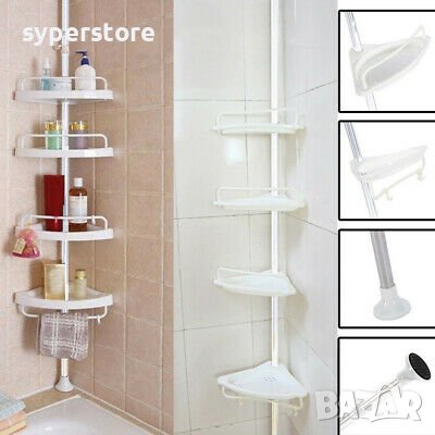 ИЗДРЪЖЛИВA И СПЕСТЯВАЩA МЯСТО - Изработена от първокласна неръждаема стомана и ABS пластмаса, здрава и устойчива на ръжда. Подсилените рафтове гарантират по-голяма носеща способност и издръжливост. Просто го закрепете между пода и тавана и триъгълната форма пасва идеално към ъгъла на стената, за да спестите повече място, да превърнете разхвърляната баня в подредена и да почистите незабавно.