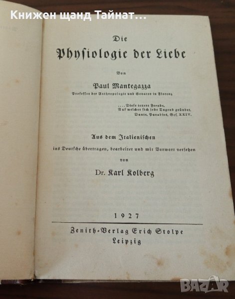 Книги Немски Език: Paul Mantegazza - Physiologie der Liebe → Обява 38873639