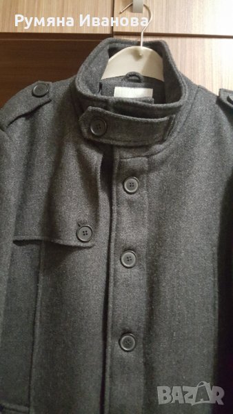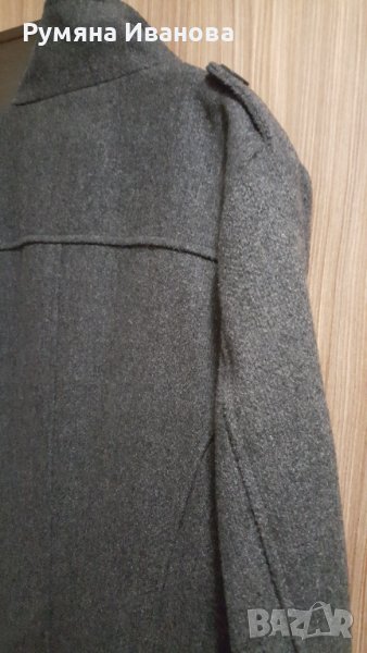 Сиво палто, класически модел с дължина около или над коляното. Дебело и много топло. Обличано е няколко пъти, като ново.