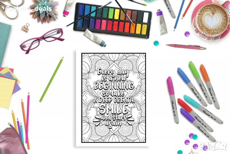 Нова Книжка за оцветяване за възрастни с цитати Антистрес Релаксация → Обява 38878235