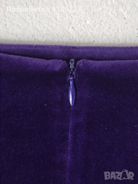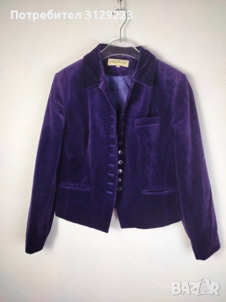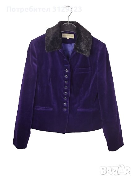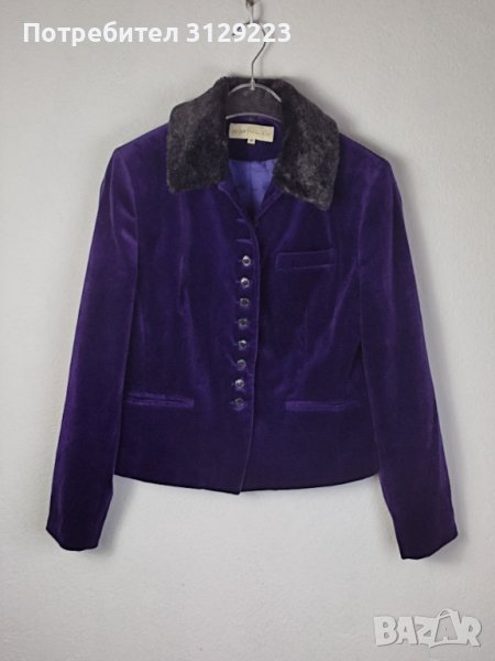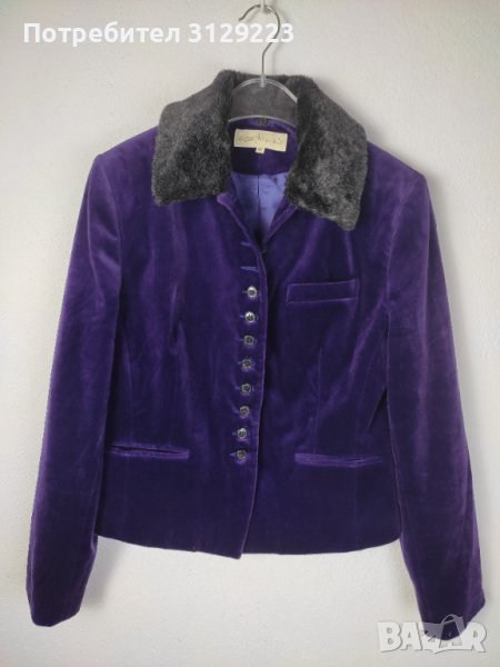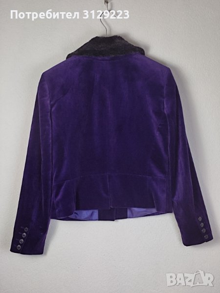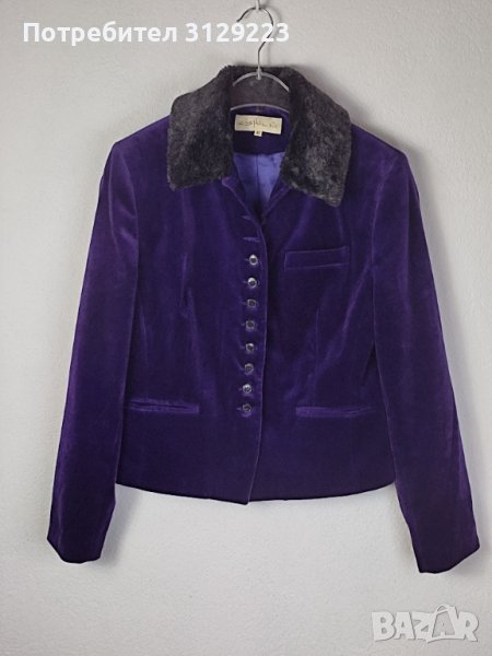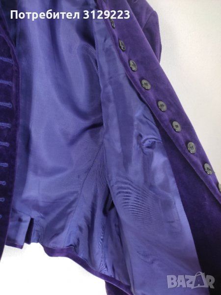 Тъмно лилаво кадифе с подвижна яка от изкуствена кожа. Винтидж