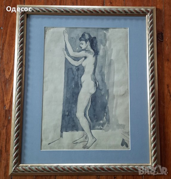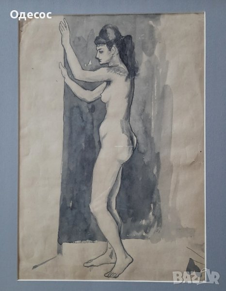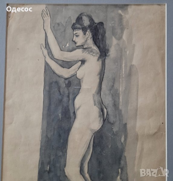 Стара картина на българския художник професор Иван Ненов. Техника туш върху хартия. Подпис в долния ъгъл.