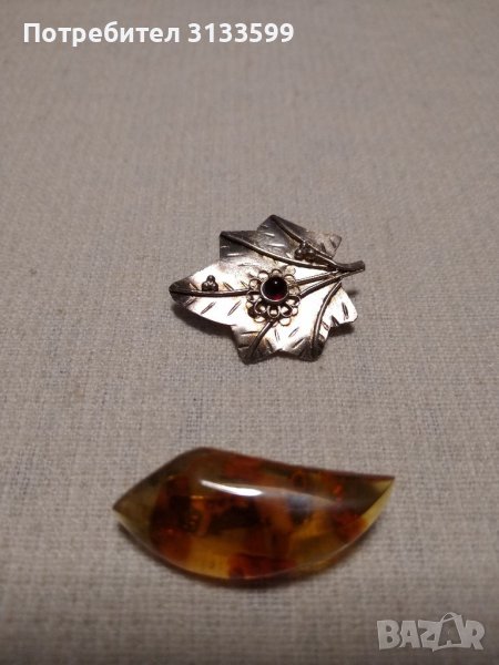 Гривна и брошка от сребро; кехлибарена брошка → Обява 38879433