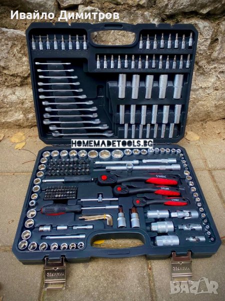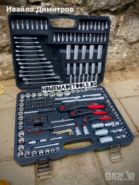 Качествен немски комплект от инструменти включващ всичко необходимо. Изработени от качествена хром-ванадиева стомана. Удобен за съхранение куфар, в който всичко ще седи на мястото си.