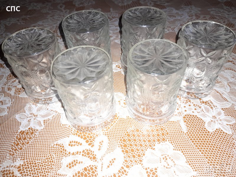 Комплект от 6 броя чашки, релефно стъкло от времето на соца