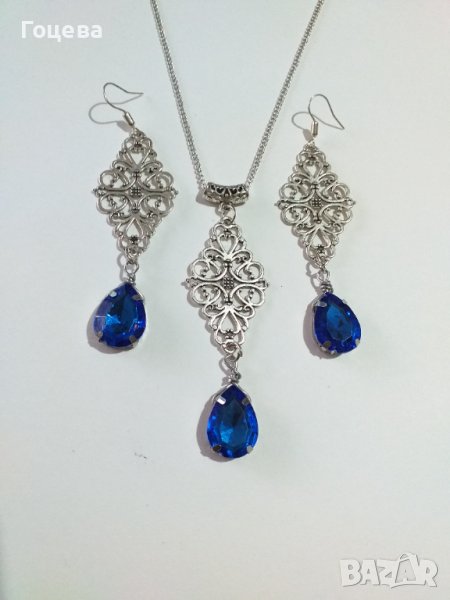 Разкошен комплект бижута в кралско синьо и филигранни орнаменти в цвят Сребро → Обява 38880933