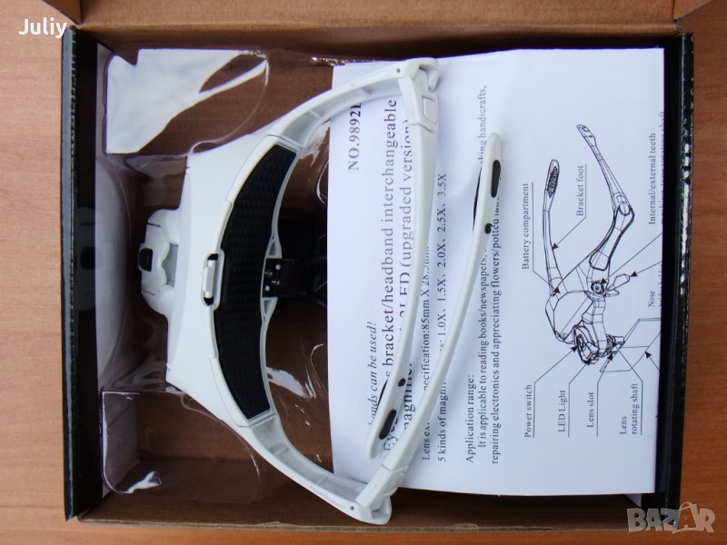 Представлява приспособление тип очила, които при поставяне на главата ,освобождават двете ръце за по-удобна работа. Отгоре върху рамката на очилата е монтиран малък LED фенер за удобство при работа. Към рамката ,пред очите се закрепят увеличителните лещи тип очила с различно увеличение според нуждите.