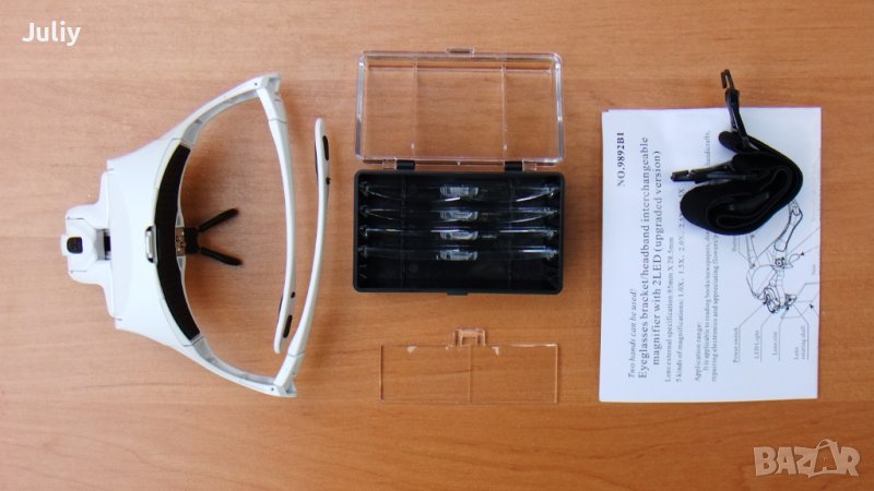 Комплект очила и 5 лещи с различно увеличение за настолна работа с финни предмети, тип свободни ръце (Handsfree) и локално осветление.