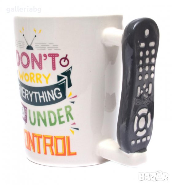 Забавна керамична чаша за топли напитки с принт и дръжка - дистанционно.