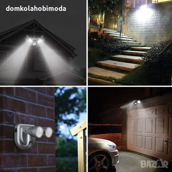 Батерия с 2 източника на светлина с ярък LED цвят и сензор за движение с автоматично изключване (25 сек). Има регулируеми глави с въртене на 120º. Осигурява дълготрайно и стабилно осветление. Работи с 4 AA батерии (не са включени). Включени са 2 монтажни винта и шайба.