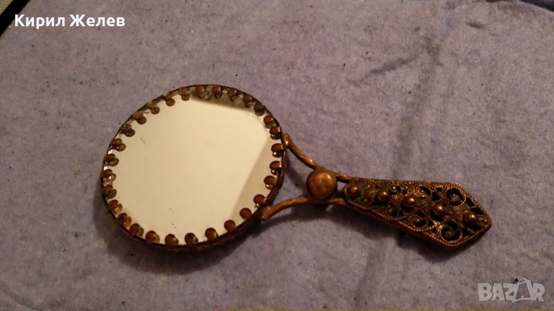 СТАРИННО РУСКО КРИСТАЛНО ОГЛЕДАЛЦЕ БРОНЗ ФИЛИГРАН РЕТРО ОРНАМЕНТИКА ПОЗЛАТА 34022
