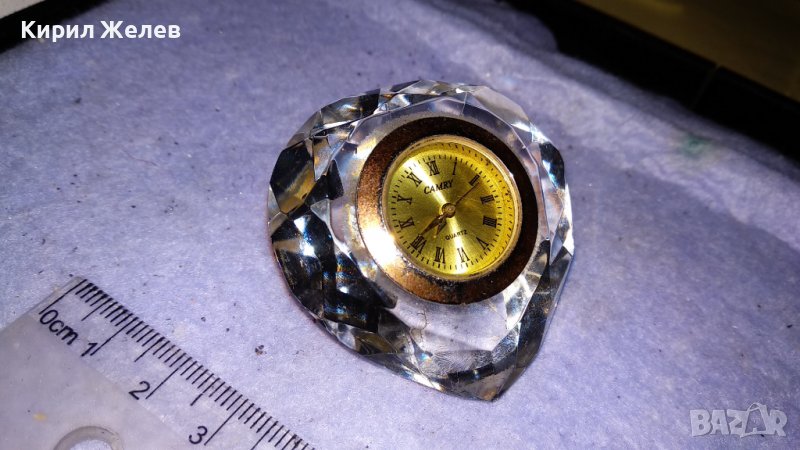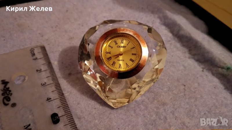 КРАСИВ КВАРЦОВ НАСТОЛЕН МИНИ ЧАСОВНИК СЪРЦЕВИДЕН ФАСЕТИРАН КРИСТАЛ 26298