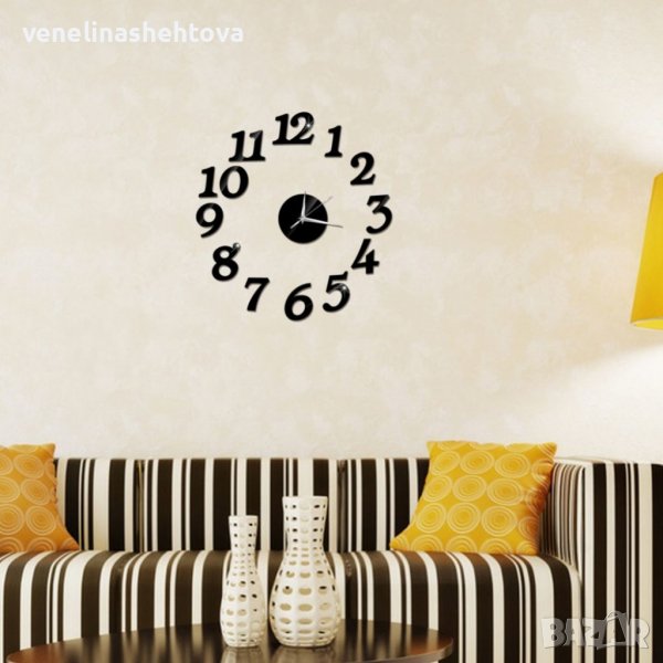 Стенни часовници с диаметър 60см.Луксозен и модерен дизайн, придаващ на вашето жилище лукс и стил. Лесен за монтаж чрез залепяне, изключително здраво, като може да залепите чертите е цифрите по ваше желание.