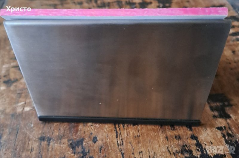 Продавам мемо часовник настолен, аналогов, кварцов, неръждаем масивен метал от дизайнерската марка Reeko. Внос от Германия. Работи с батерии 2xAA, които не са включени. Има метална химикалка и инструкция за употреба към часовника. Около циферблата има бяло хартиено кубче с 50 листа, на които можете да си водите бележки. Часовникът е масивен и стабилен, тежи 387 гр. Размер на предната част на часовника: 14х17 см и размер на основата 15х15 см см. Уникален, много рядък. Страхотен подарък. От частна колекция. За ценители.