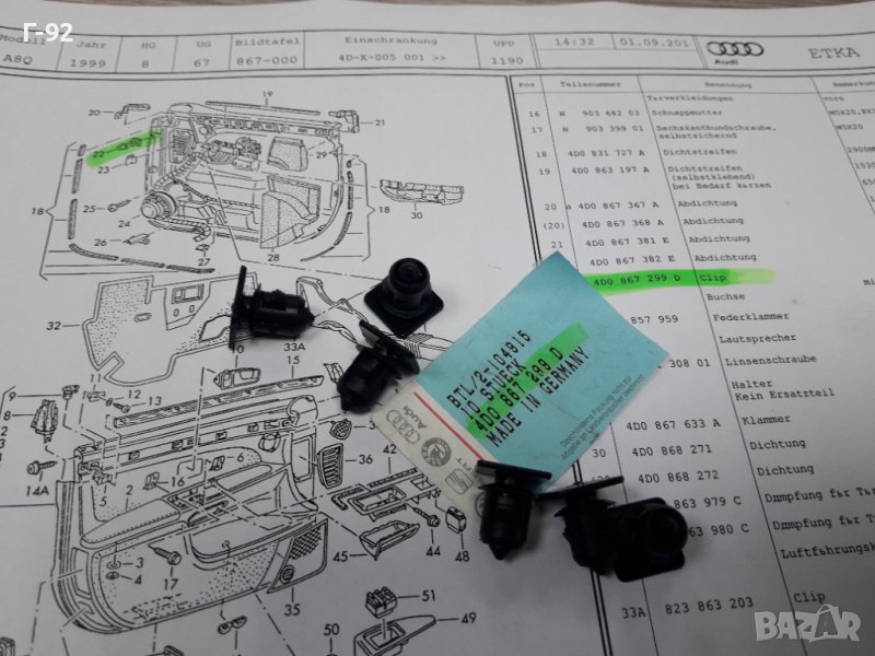 4D0867299D**NEU**VAG** ЩИПКИ ЗА ОБЛИЦОВКИ НА ВРАТИТЕ **