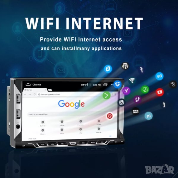 Мултимедия, плеър, за кола, RDS, двоен дин, 2 DIN, навигация, за кола, за автомобил, Android