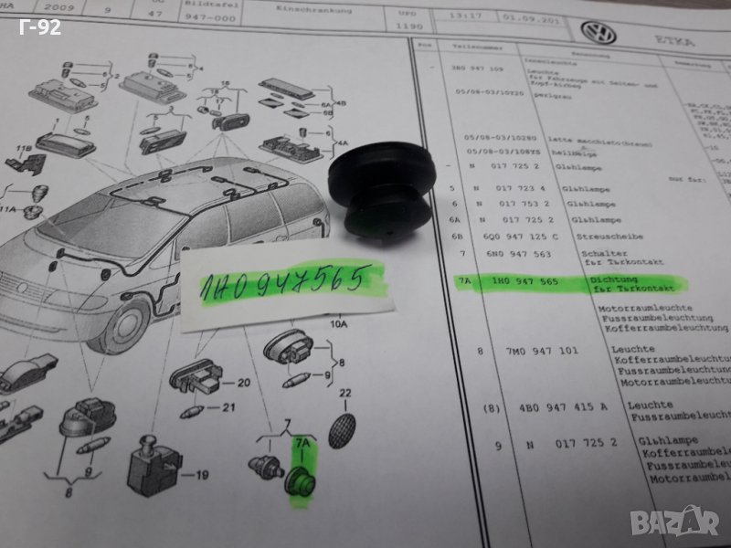1H0947565**NEU**VAG**МАНШОН ЗА ШАЛТЕРА НА ЦЕНТРАЛНОТО ЗАКЛЮЧВАНЕ НА ВРАТИТЕ**