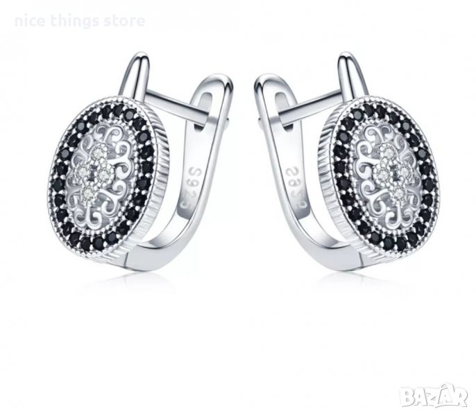 Стилни и красиви обици с черни камъни и цирконий.