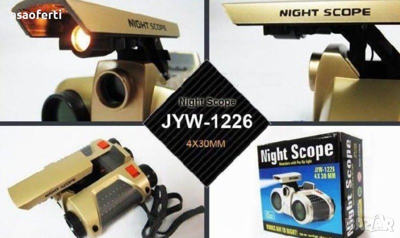 бинокъл за нощно виждане 4×30 Бинокъл 4 x 30 mm, позволява на потребителите да виждат на тъмно с нощно виждане. Зелени оцветени лещи за наблюдение. Лещи 4.4×30 MM, изскачащи прожектори светят 25 фута. Зелена стелт светлина и стелт светлина превключвател. Включена лента за врата, необходими са 2 батерии AAA (не са включени). Размер на продукта: 4x30mm обектив.