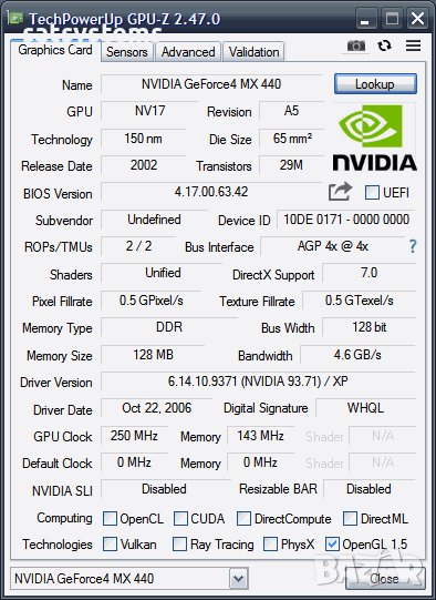 Chipset/GPU Model: NVidia GeForce MX-440SE