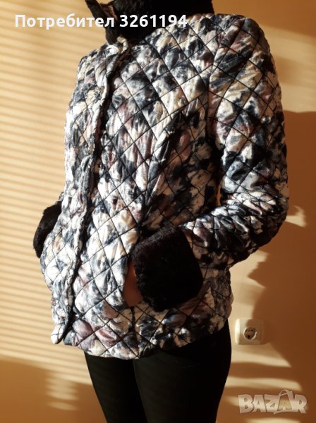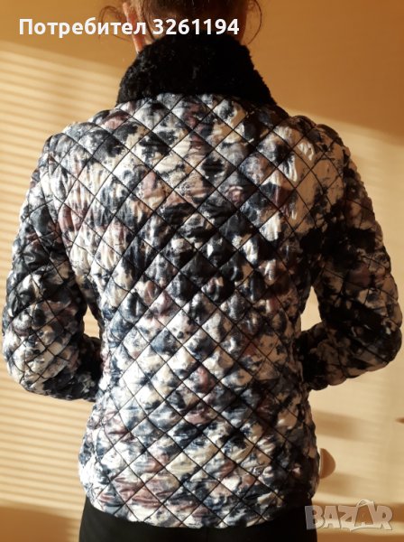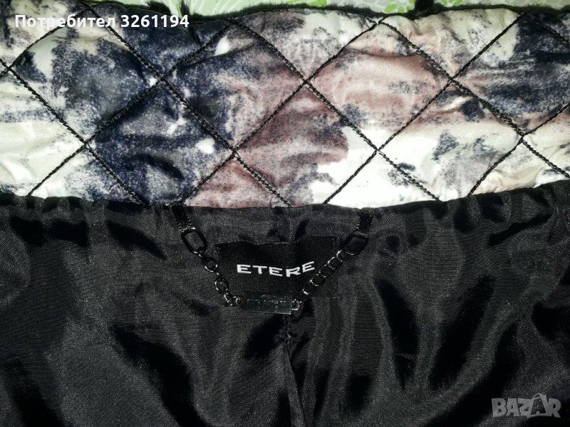 Капитонирано яке в цветна щампа марка ETERE. Състояние - перфектно. Якето има два странични джоба с цип. Закопчаването му е с метални тик-так копчета. Гръдна обиколка - 94 см.