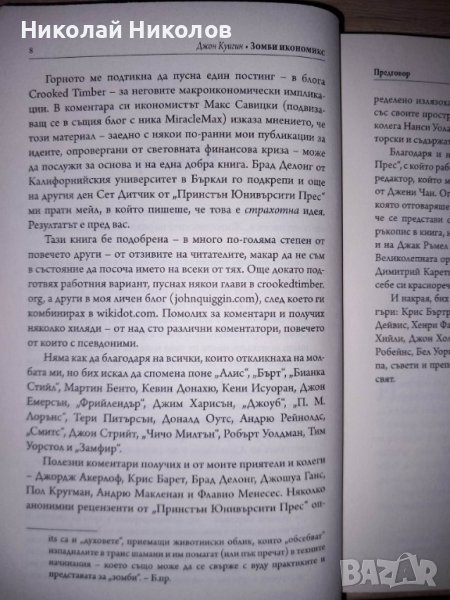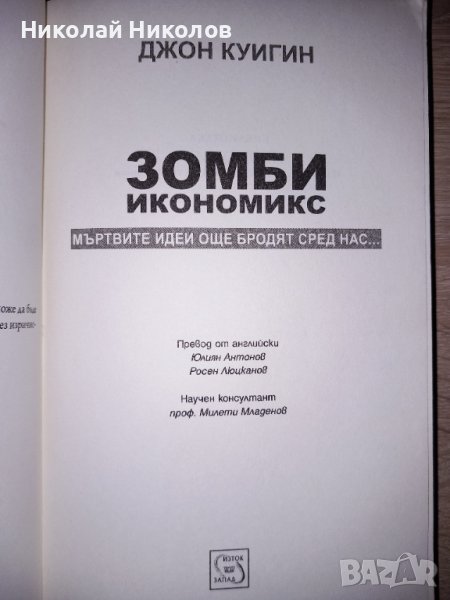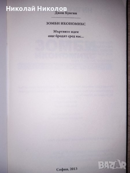 Убиването на вампири и върколаци е лесна работа. Как обаче да убием икономическите зомбита – идеите, които отдавна са мъртви, но продължават да пъплят насреща ни? Въоръжен единствено с факти, Джон Куигин си поставя за цел да изпрати в отвъдното тези идеи веднъж и завинаги. Неговата „Зомби икономикс“ трябва да стане задължително четиво за онези, които рано или късно ще дръзнат да върнат към живот икономическите теории, изправили ни на ръба на разрухата."