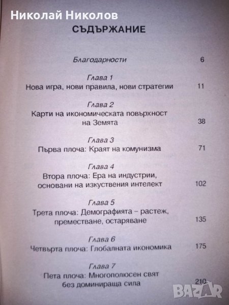 "Бъдещето на капитализма" изследва основните сили, които създават икономическото неравновесие, и показва как да спечелим от днешния непрестанно изменящ се свят. Подобно на бавно плъзгащите се континентални плочи на земната повърхност, световните промени оказват влияние на икономическата игра с почти неуловими движения, които в крайна сметка имат огромни последствия. Според геологията преместването на плочите създава и разрушава цели континенти. Придържайки се към провокиращата аналогия на Търоу, магнитутът на описаните по-долу промени - "икономическите плочи" - не може да бъде пренебрегнат: Преминаването на комунистическия свят към капитализма; Появата на индустрии, основани на изкуствения интелект; Променящата се демография; Истински глобална икономика; Липса на доминиращ политически или военен световен лагер.