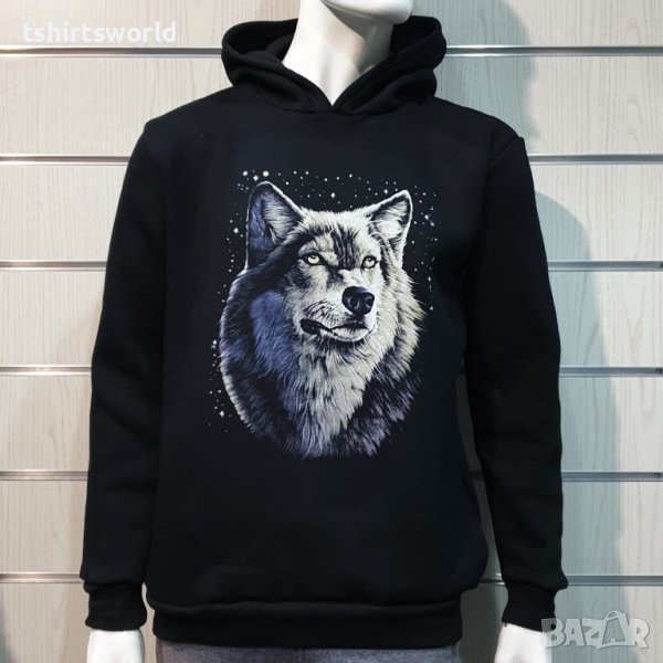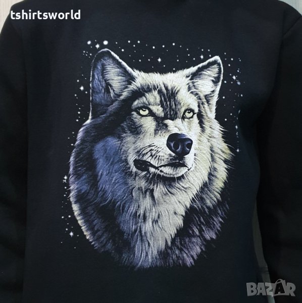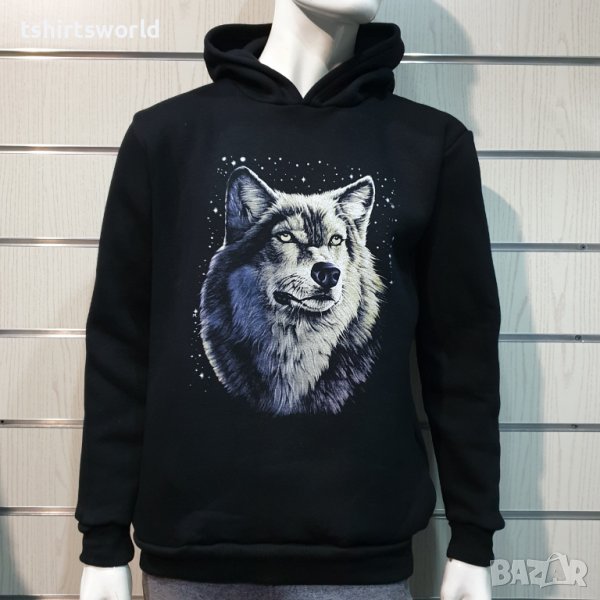Нов мъжки суичър с дигитален печат Вълк - Звезди, Серия вълци