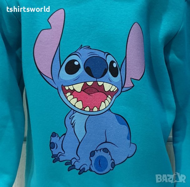 Нов мъжки суичър с дигитален печат Стич (Stitch) в зелен цвят