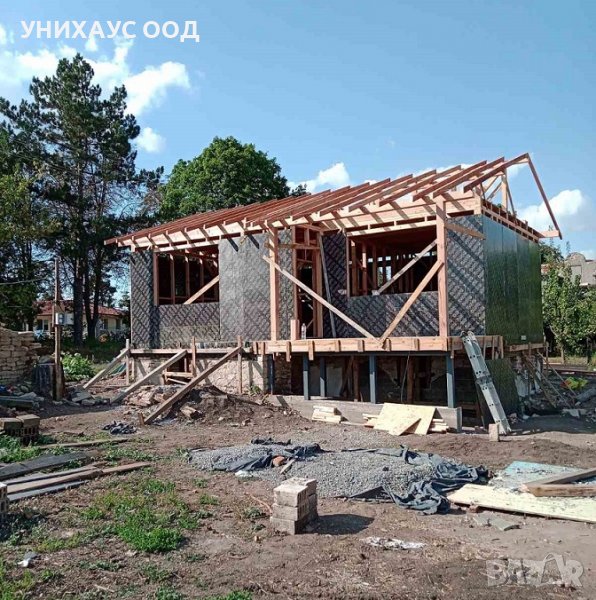 Етапите за Строителство на сглобяема къща тип ниско етажно рамково-панелно строителство от Унихаус ООД са следните и включват в себе си, както следва, като има възможност за всякакви конфигурации: I. Етап на груб строеж: Става въпрос за основната конструкция на сградата, а това включва: