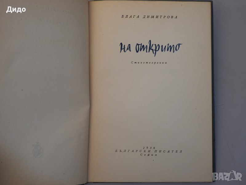 Блага Димитрова - На открито, Стихотворения, 1956 г, снимка 1 - Художествена литература - 38909947 Блага Димитрова - На открито, Стихотворения, 1956 г, снимка 2 - Художествена литература - 38909947 1/2