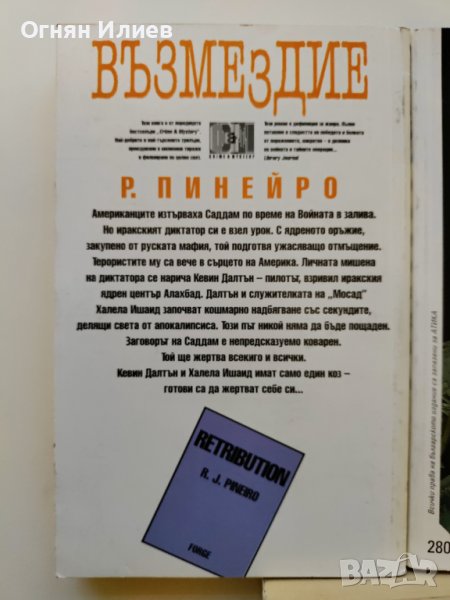 • „Възмездие“ - Р. Пинейро, 1996г. Книгата има 415 страници, меки корици и е в отлично състояние.