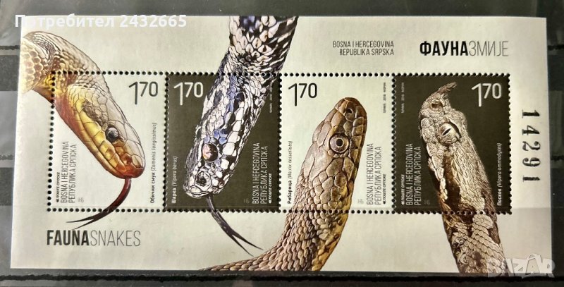 1290. Босна и Х.( Реп.Сръбска ) 2018 ~ “ Фауна. Змии.”, **, MNH