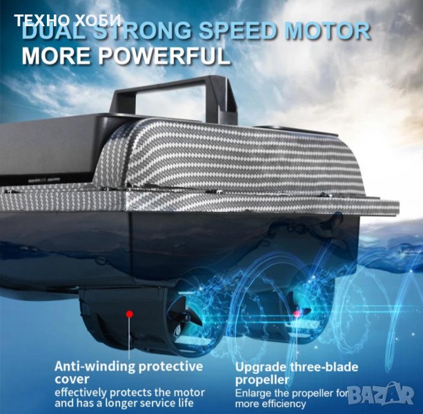 2. Двойни мотори, огромно натоварване Два отделни резервоара за примамки, които могат да се контролират отделно. Резервоар за примамки с голям капацитет, тегло 1,5 кг