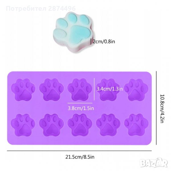 Комплектът включва 1 бр силиконова форма с 10 лапички.