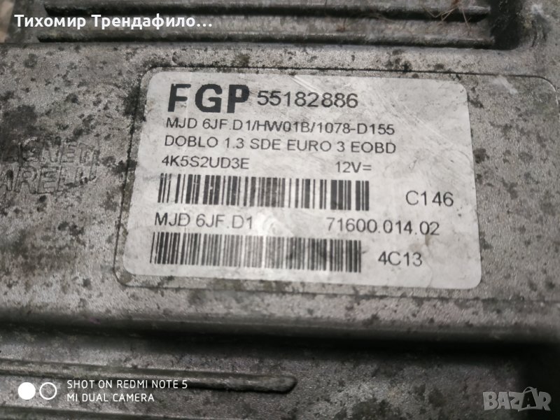 Fiat Doblo 1.3 ECU Magneti Marelli 55182886 MJD6JF.D1 HW01B , MJD 6JF.D1 , 71600.014.02 компютър д → Обява 38922954