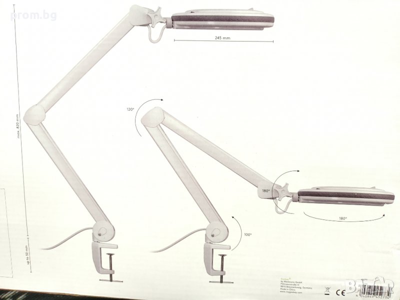 Led подвижна лампа с лупа 3х, истинско стъкло. Внос от Германия. Подходяща за прецизна работа в електрониката, за козметични кабинети, лекарски кабинети и др. Конструкцията е здрава, стабилна, оборудвана с 2 двойни пружини и може да се завърта и накланя във всички посоки. Здраво се закрепя с винтова скоба за плотове до 50 мм