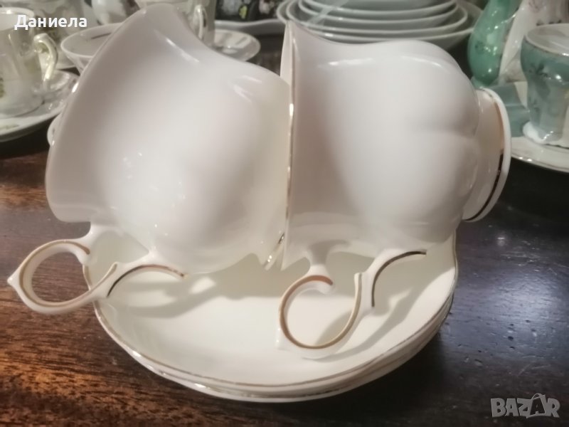 Чашки с чинийки от фин бял порцелан, със златни кантове с маркировка cambridge garden collection fine bone china.