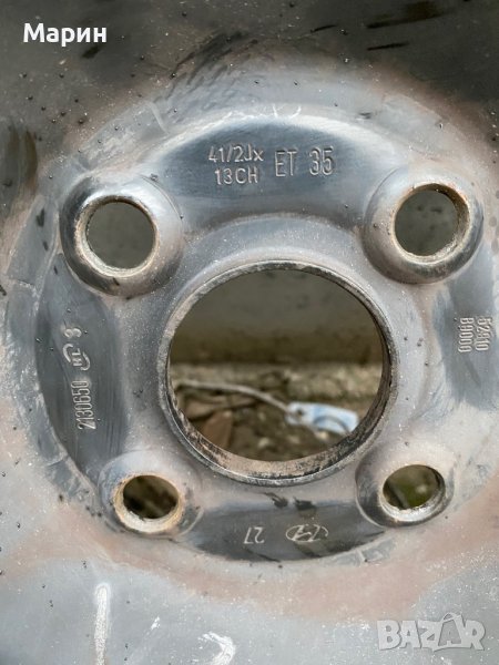 4 броя железни джанти 13 цола междуболтово 4Х100 ет 35 4.5 J централен отвор 54мм оригинални от Хюндай ,гумите са 2 броя Континентал 155 70 13 летни и Тойо летни дот 2019-2020 година ,5-5.5 мм протектор ,нов внос прави здрави не са карани в Бг ,внос Германия