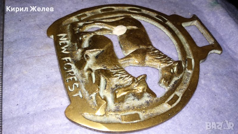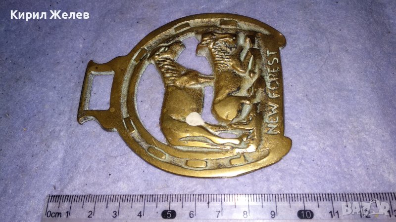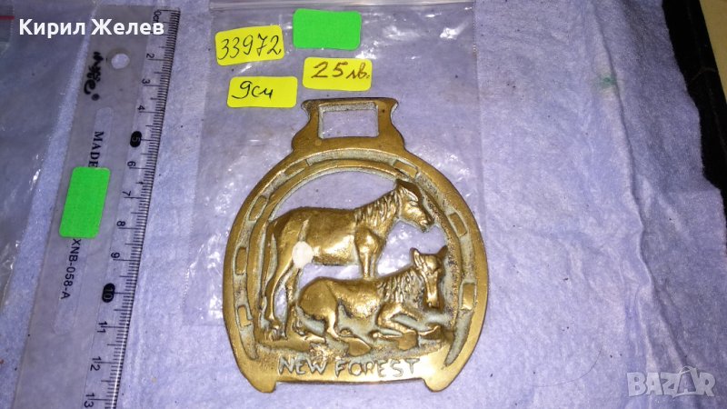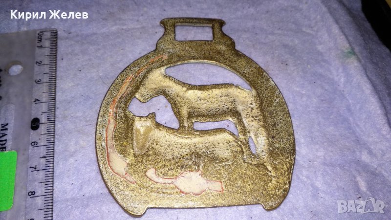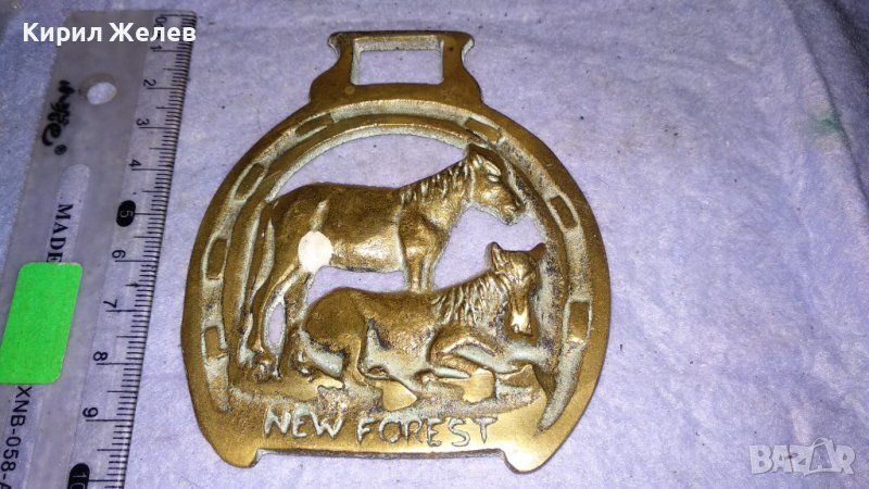 ДВОЙКА КОНЕ и ПОДКОВА Старо БРОНЗОВО ДЕКОРАТИВНО АРТ ПАНО за СТЕНА АНГЛИЯ 33972