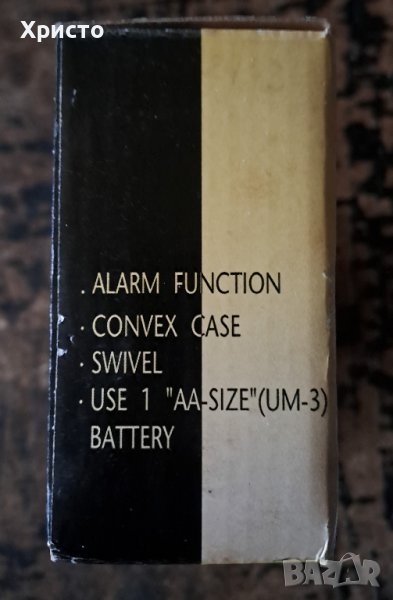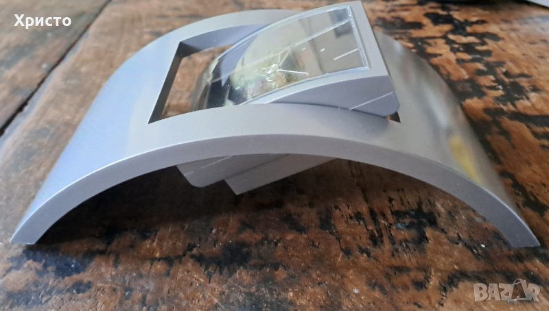 Продавам часовник будилник за бюро с въртяща се база, кварцов. Работи с 1xAA батерия (не е включена в цената). Качествен продукт от серията 100%. Часовникът е с тегло 180гр. Размерът на часовника е 10x18.5 cm, а въртящият се циферблат е 6.4x8 cm. Внос от Германия. Пластмаса. В оригиналната си кутия, която на места има малки драскотини. Единствен по рода си. Страхотен подарък. За ценители.
